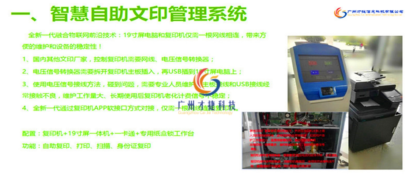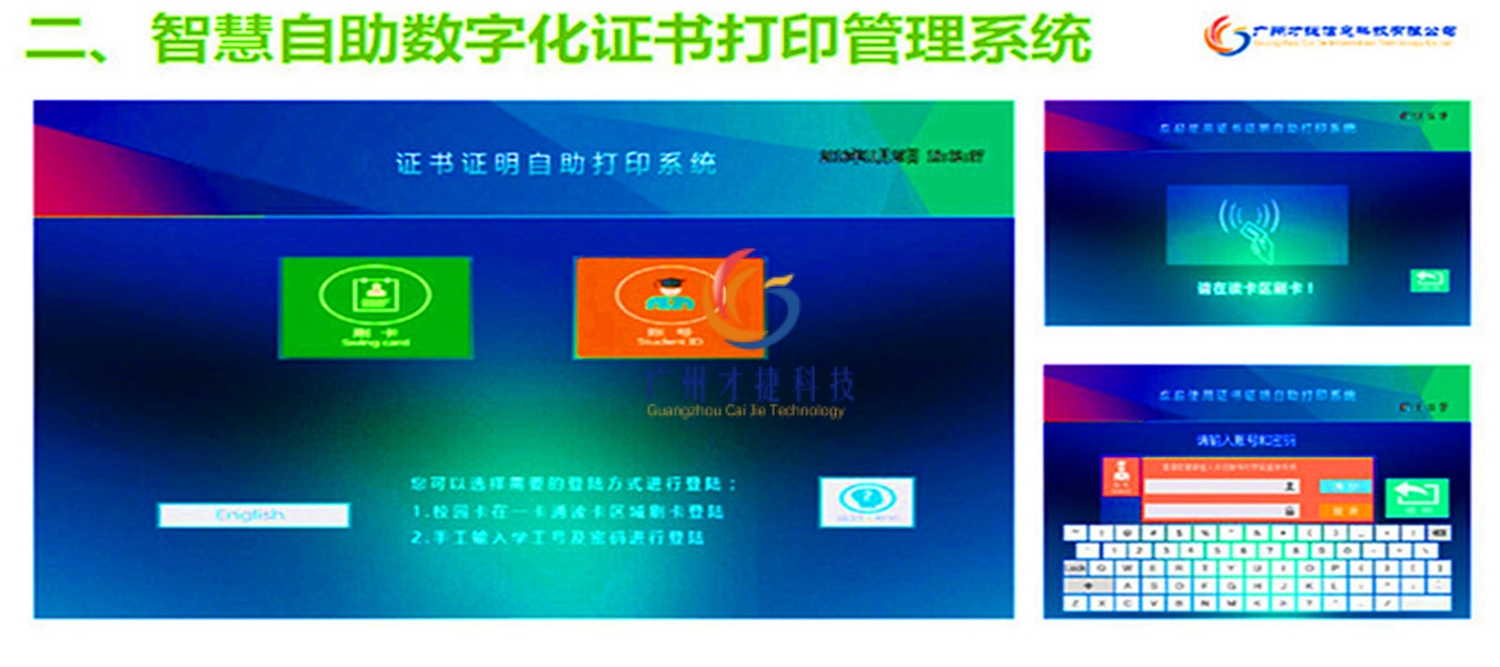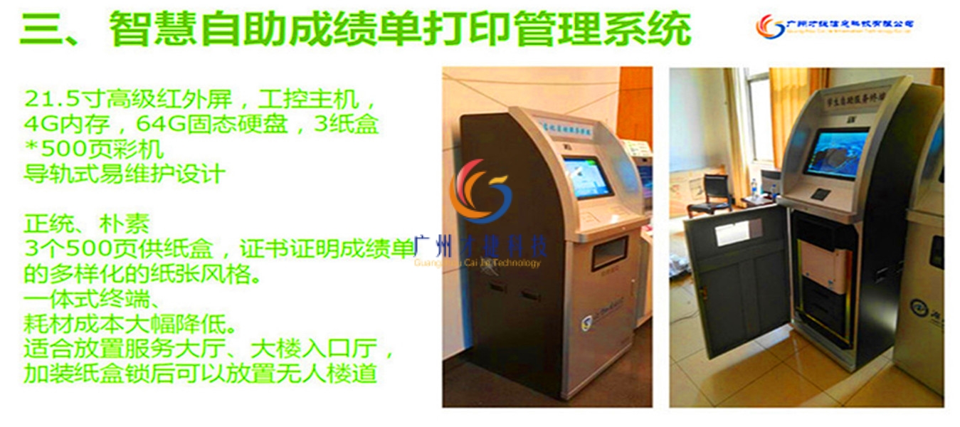 证件证明、成绩单自助打印 自助打印 扫描 复印自助文印系统通过一卡通身份认证、利用学校原有的校园网络、通过对复印机系统的集成真正做到无人化自助复印、打印、扫描,并做到使用人、使用时间、使用内容、使用费用变的可控可查